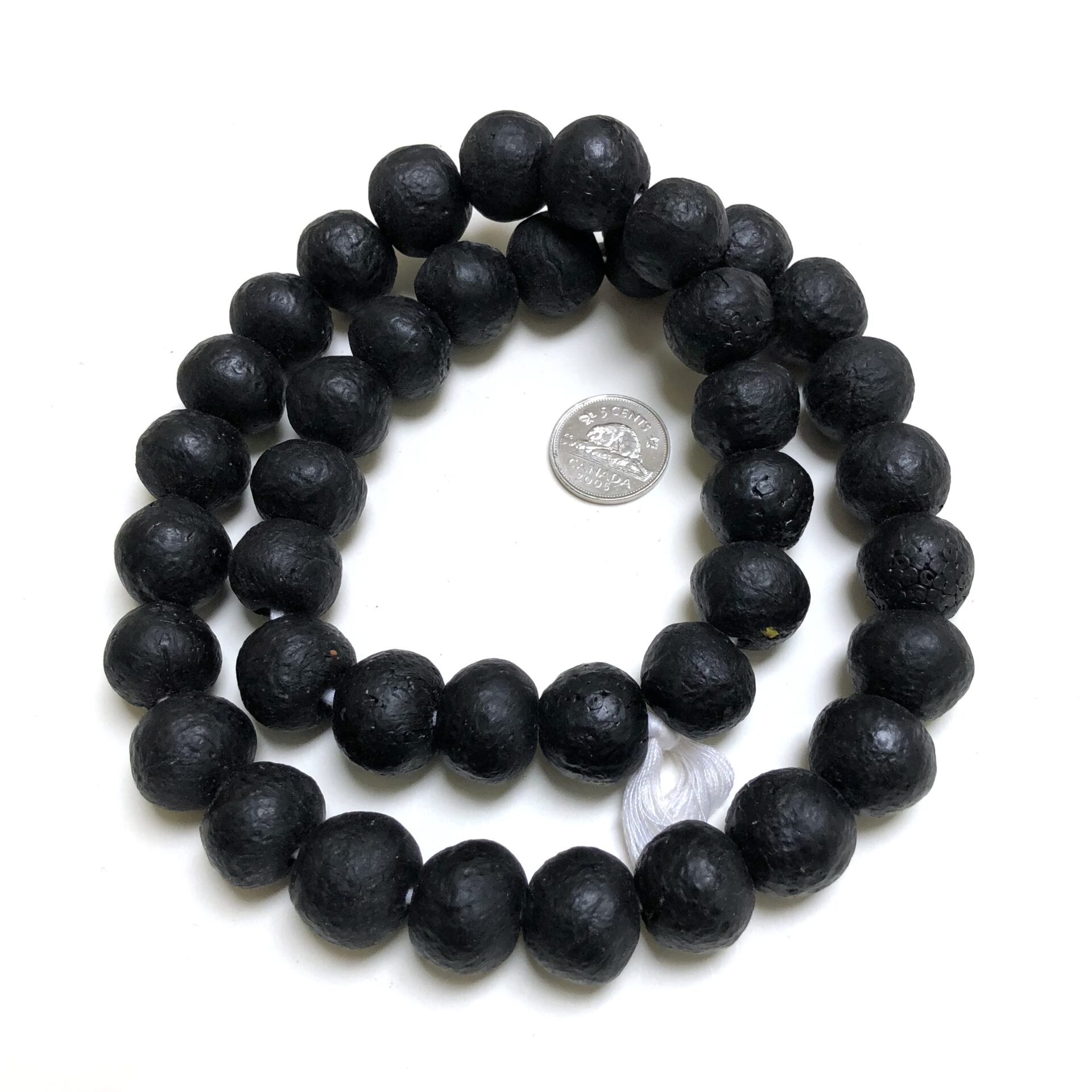 Option 1 is a strand of about 40 17 mm translucent Black Recycled Glass Beads on string 25″ long.